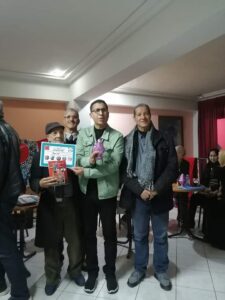 ليختتم اللقاء الثقافي الماتع حوالي الساعة السابعة مساء بتوزيع الشواهد التقديرية وهدايا للضيوف الكرام .