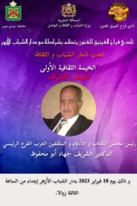 تحت شعار الشباب والثقافة الخيمة الثقافية ضيف الشرف الشريف الدكتور جهاد ابو محفوظ