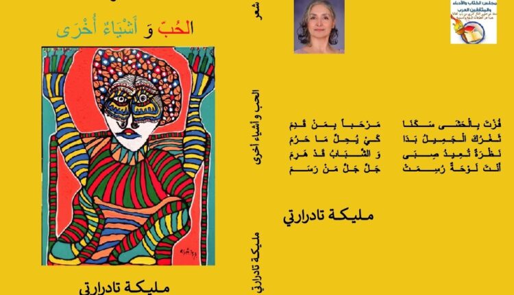 منشورات مجلس الكتاب والأدباء والمثقفين العرب – إصدار جديد — صدر اليوم الثلاثاء الموافق 23/1/2024 ديوان شعر للشاعرة المغربية مليكة تادرارتي يحمل عنوان – الحب وأشياء أخرى – لوحة الغلاف للفنان التشكيلي المغربي مصطفى العمري الملقب بالمجدوب والتقديم بقلم الاستاذ إدريس العلوي المدغري
